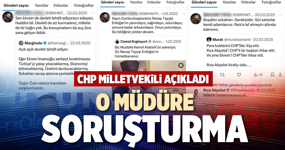 Denizli’de Hacı Hasan Ali Kömürcüoğlu Ortaokulu’nda müdür olarak görev yapan İbrahim Topal’ın sosyal medya platformu X’ten yaptığı paylaşımlar başına dert oldu. Topal’ın paylaşımlarında CHP ve CHP genel başkanı hakkındaki sözleri partililerin tepkisini çekmişti.