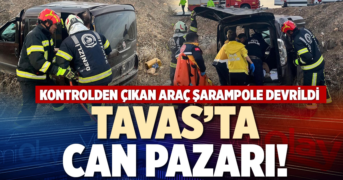 Denizli'nin Tavas ilçesinde sürücünün direksiyon hakimiyetini kaybetmesiyle kontrolden çıkan araç şarampole devrildi. Kazada yaralanan 2 kişi, hastaneye kaldırıldı.