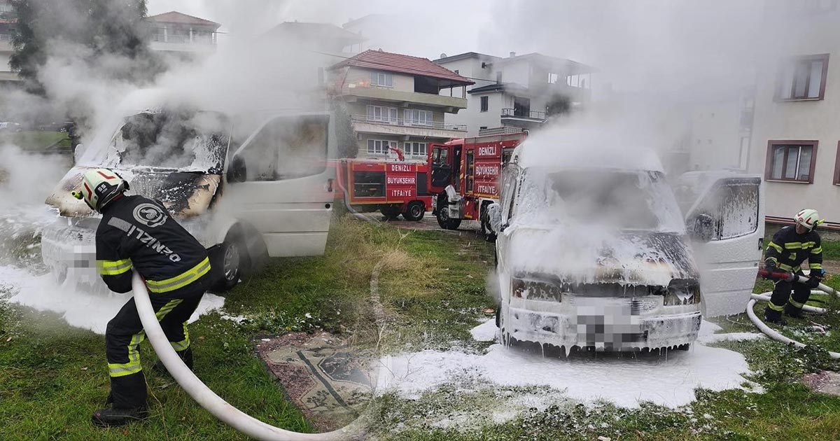 Olay, Denizli’nin Buldan ilçesi Cumhuriyet Mahallesi’nde meydana geldi. Park halinde bulunan bir minibüsten bilinmeyen bir sebeple dumanlar yükselmeye başladı. Dakikalar içinde büyüyen dumanlar yerini alevlere bıraktı. Yangını fark eden çevredeki vatandaşlar durumu 112 Acil Çağrı Merkezine bildirdi.