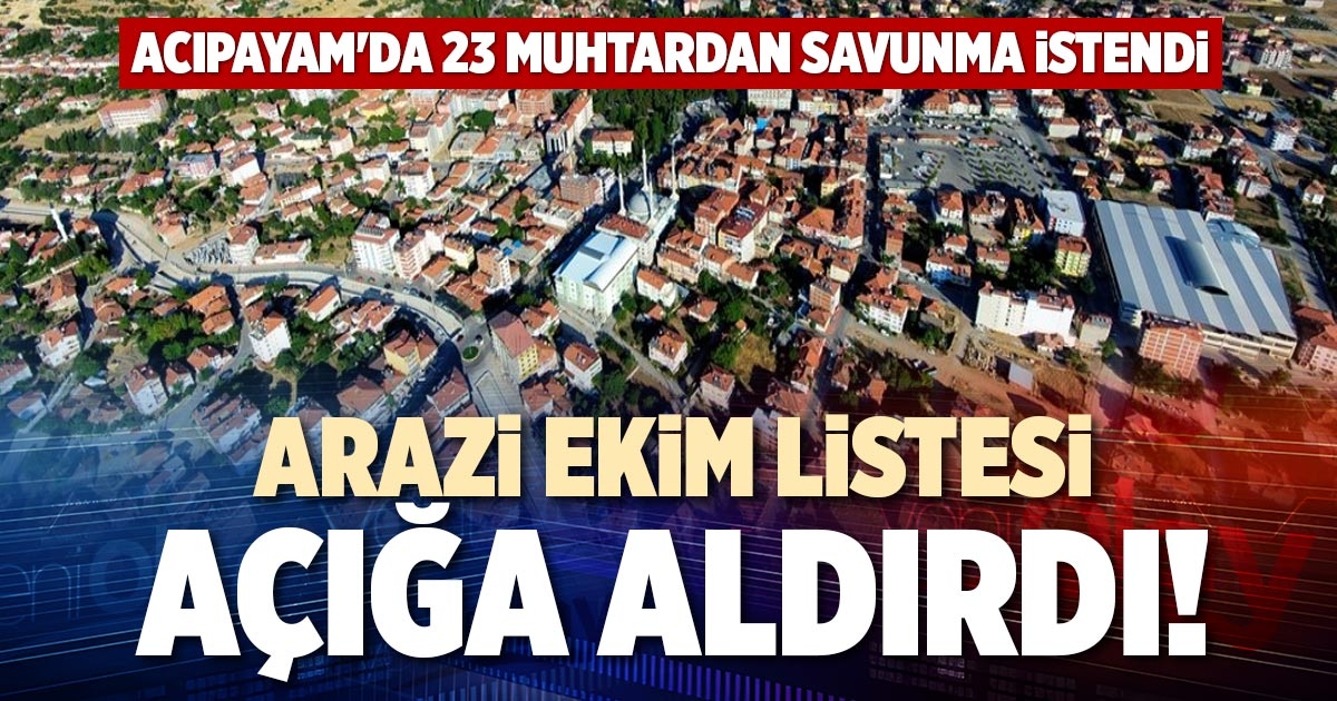 Denizli'nin Acıpayam ilçesinde arazi ekim listelerinin zamanında teslim edilmemesi üzerine 23 mahalle muhtarından savunma istendi, bir muhtar görevden uzaklaştırıldı.