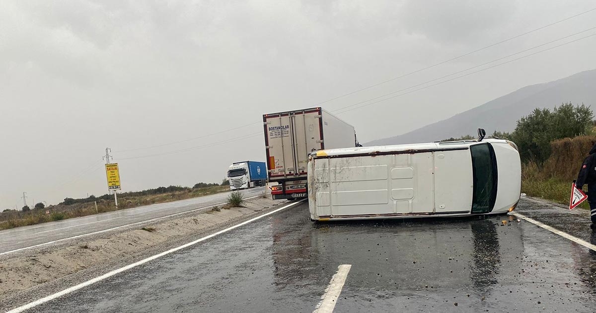 Denizli'nin Buldan ilçesinde seyir halindeyken kontrol çıkan minibüsün devrilmesi sonucu meydana gelen kazada sürücü yaralandı.