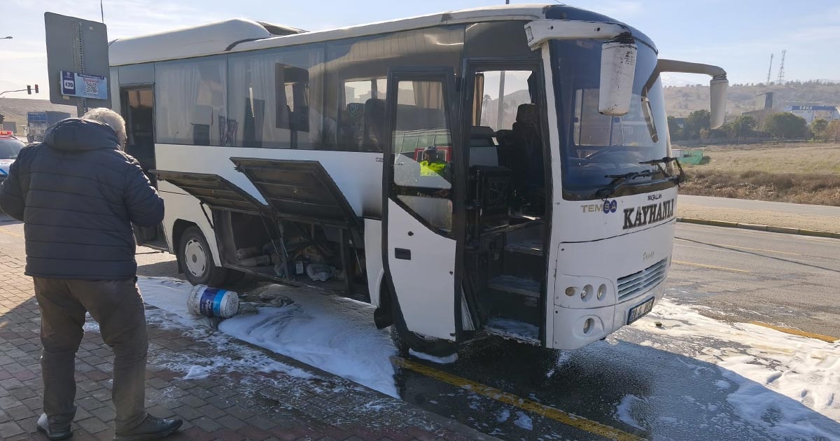 Denizli'de hareket halindeki işçi servisi motor kısmından alev aldı. Sürücünün yangın tüpüyle müdahalesi ve itfaiye ekiplerinin desteğiyle alevler kısa sürede söndürüldü.