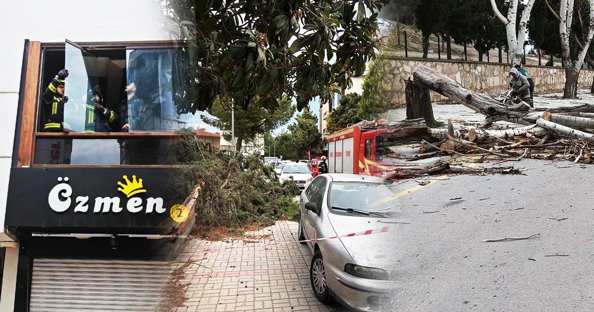 Şiddetli rüzgar ve fırtına Denizli’de hayatı olumsuz etkiledi. Ağaçlar devrildi, bazı binalarda çatılar uçtu. Balkonlardan uçan eşyalar elektrik tellerine takıldı. Bir sürücü seyir halindeyken ön camına çatı parçası isabet etti, kazayı sürücünün soğuk kanlılığı önledi.