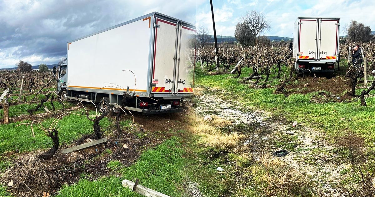 SABIKALI YOLDA KAMYON ÜZÜM BAĞINA GİRDİ