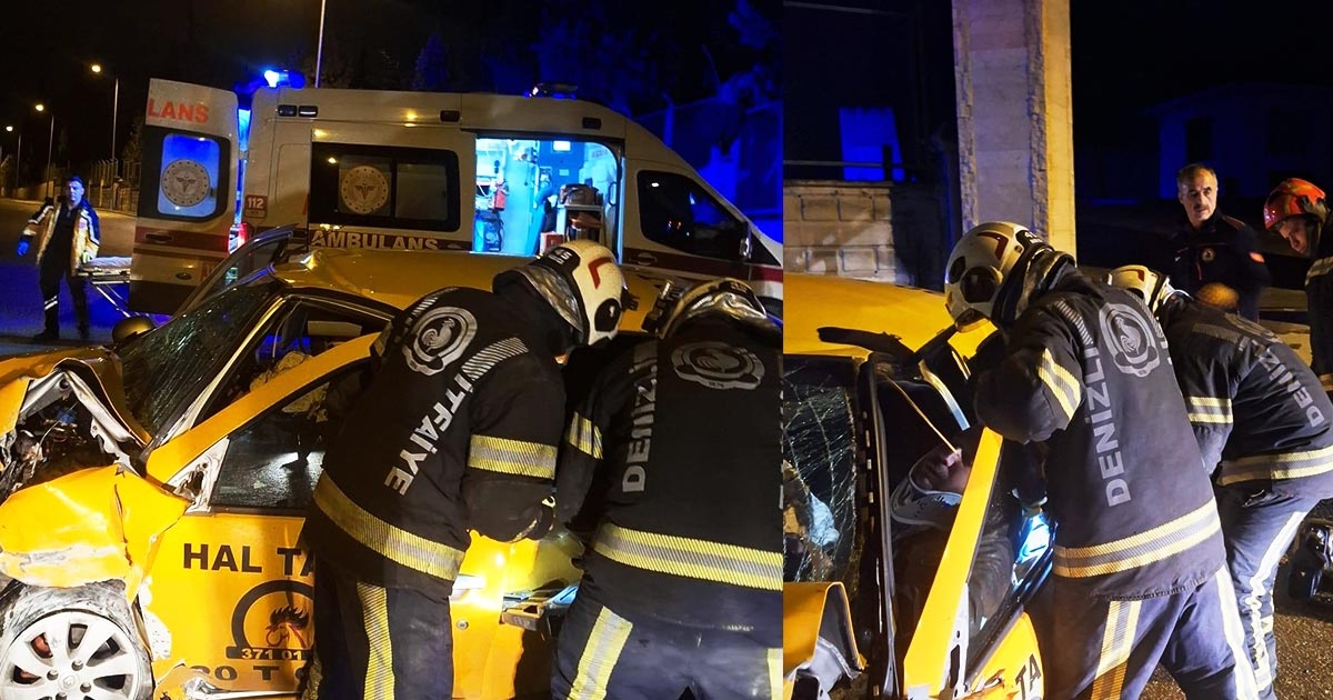 Kaza dün gece Merkezefendi İlçesi’ne bağlı Şemikler Mahallesi’nde meydana geldi. Seyir halindeyken sürücüsünün direksiyon hakimiyetini kaybettiği ticari taksi, yol kenarındaki yapının giriş bölümünde bulunan kemerin beton ayağına çarptı.