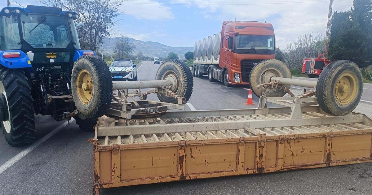 Denizli’nin Buldan ilçesinde traktör ile hafif ticari aracın çarpışması sonucu meydana gelen trafik kazasında yol bir süreliğine trafiğe kapandı.