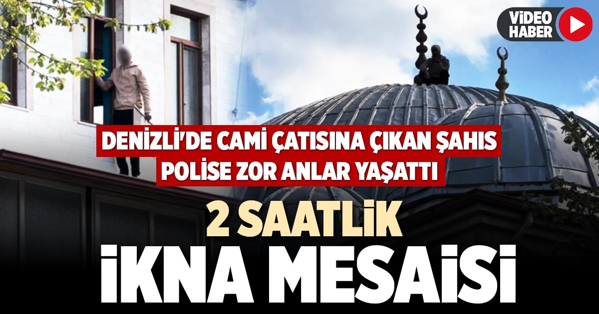 Denizli’nin Pamukkale ilçesinde intihar etmek amacıyla cami çatısına çıkan bir kişi, polis ekiplerinin iki saatlik çalışması sonucu ikna edilerek aşağı indirildi. Şahsın iniş yöntemi çevredeki vatandaşlar tarafından hayretle izlendi.