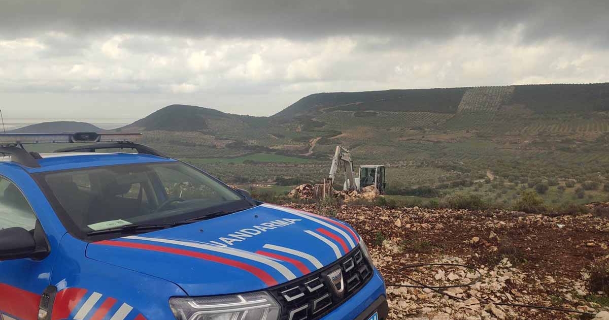 Didim İlçe Jandarma Komutanlığınca Didim İlçesi Akköy Mahallesi’nde devriye esnasında M.K. isimli şüpheli şahsın hazineye ait araziyi iş makinesi ile izinsiz kazdığı tespit edildi. Şahıs hakkında adli ve idari işlemlere başlandı.