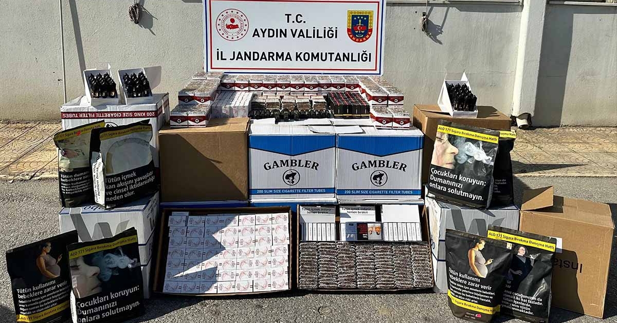 Aydın İl Jandarma Komutanlığı KOM Şube Müdürlüğü ve Efeler İlçe Jandarma Komutanlığınca sigara kaçakçılığına yönelik koordineli çalışma başlattı. Yapılan çalışmalarda Efeler ilçesinde kaçak sigara üretimi ve satışı yapan M.S ve K.E isimli şüpheli şahısların işyerlerinde yapılan aramada piyasa değeri yaklaşık 1 milyon 100 bin TL değerinde, 735 bin adet içi tütün doldurulmuş makaron, 12 bin 500 adet boş makaron, 45 kilogram kıyılmış tütün, 143 adet likit ele geçirildi. Şüpheli şahıslar ile ilgili adli ve idari sürecin devam ettiği öğrenildi.