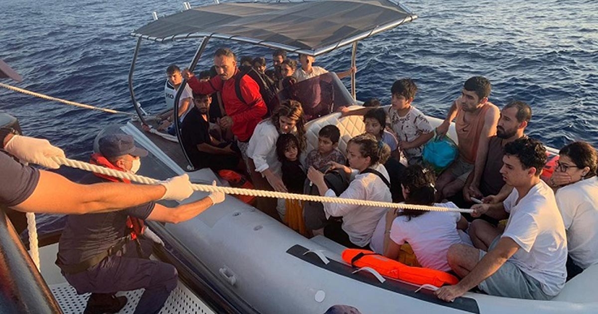 Muğla’nın Marmaris ilçesinde yasa dışı yollardan Yunanistan adalarına geçmeye çalışan ve içinde 20’si çocuk 35 düzensiz göçmen ile 6 göçmen kaçakçılığı şüphelisinin bindiği bot arıza yapınca açık denizde sürüklenmeye başladı.