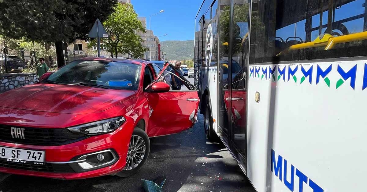 Muğla'nın Menteşe ilçesinde sürücüsünün açtığı otomobilin kapısına belediye otobüsü çarparken, kazada şans eseri yaralanan olmadı.