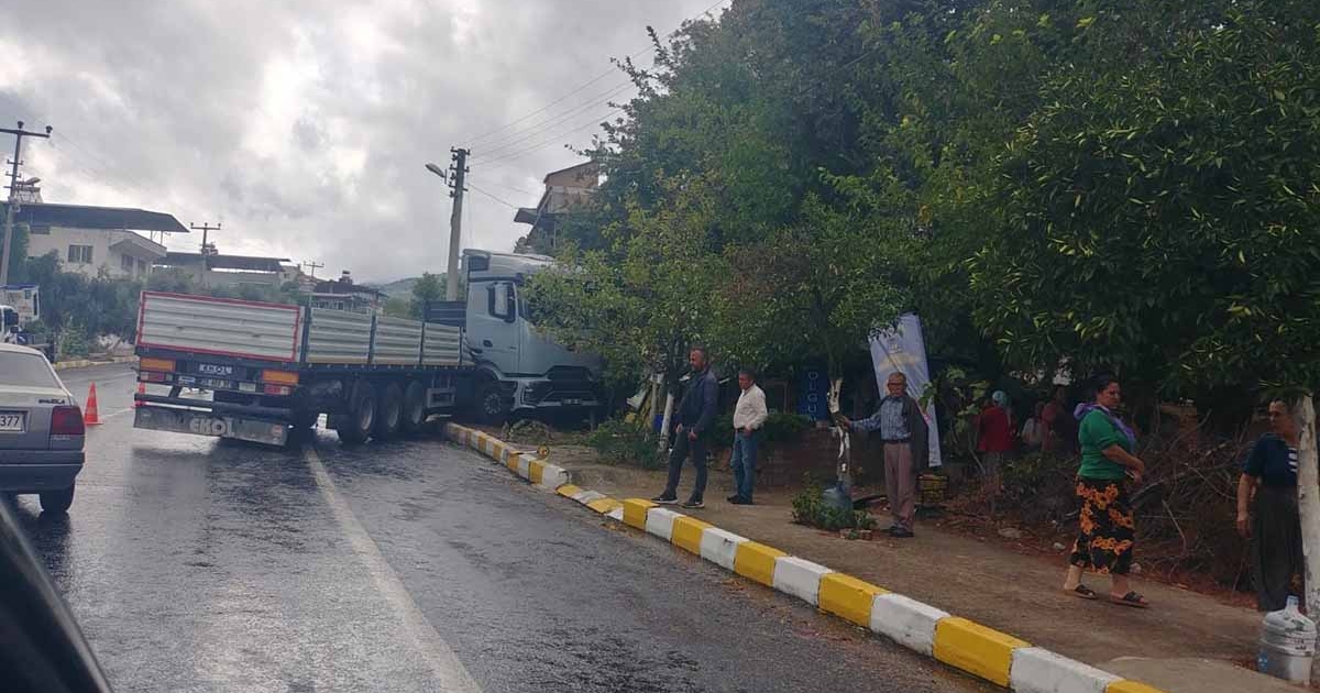 SÜRÜCÜNÜN HAKİMİYETİNİ KAYBETTİĞİ TIR KALDIRIMA ÇIKTI