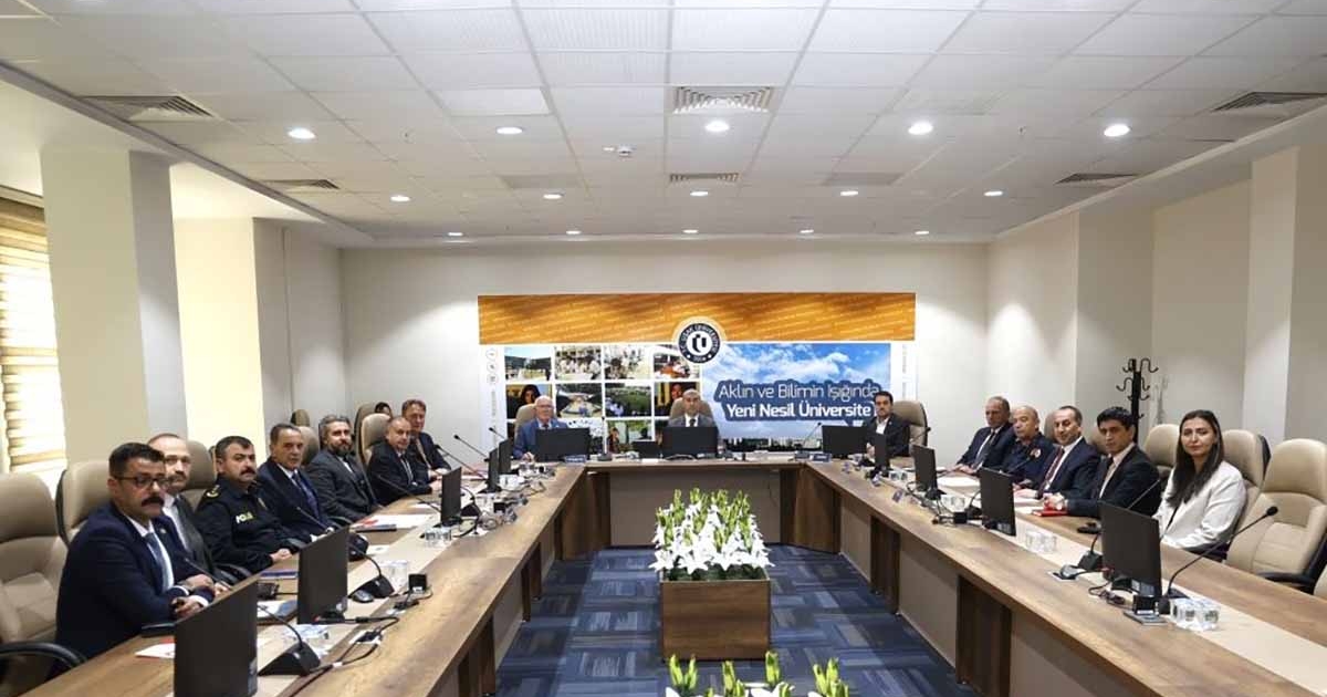 Üniversite güvenliğine yönelik etkin tedbirler alınabilmesi ve gerekli koordinasyonun sağlanabilmesi amacıyla gerçekleşen toplantıda Rektör Prof. Dr. Ekrem Savaş, üniversitenin fiziki ve teknolojik güvenlik önlemleri, acil durum ve kriz yönetimi planları hakkında bilgi verdi.