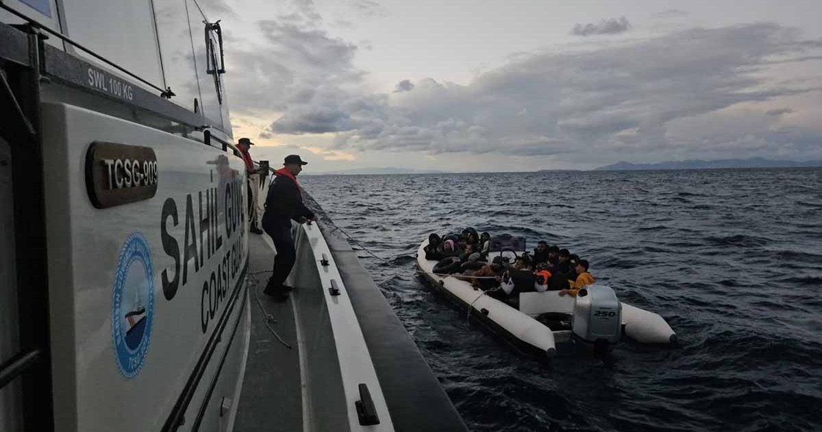 Aydın’ın Didim ilçesinde lastik bot içerisinde sürüklenen 11’i çocuk 23 düzensiz göçmen kurtarıldı.