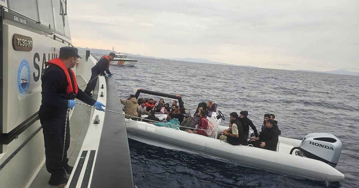Aydın'ın Didim ilçesi açıklarında Yunanistan tarafından geri itilen 9'u çocuk 36 düzensiz göçmen kurtarıldı.