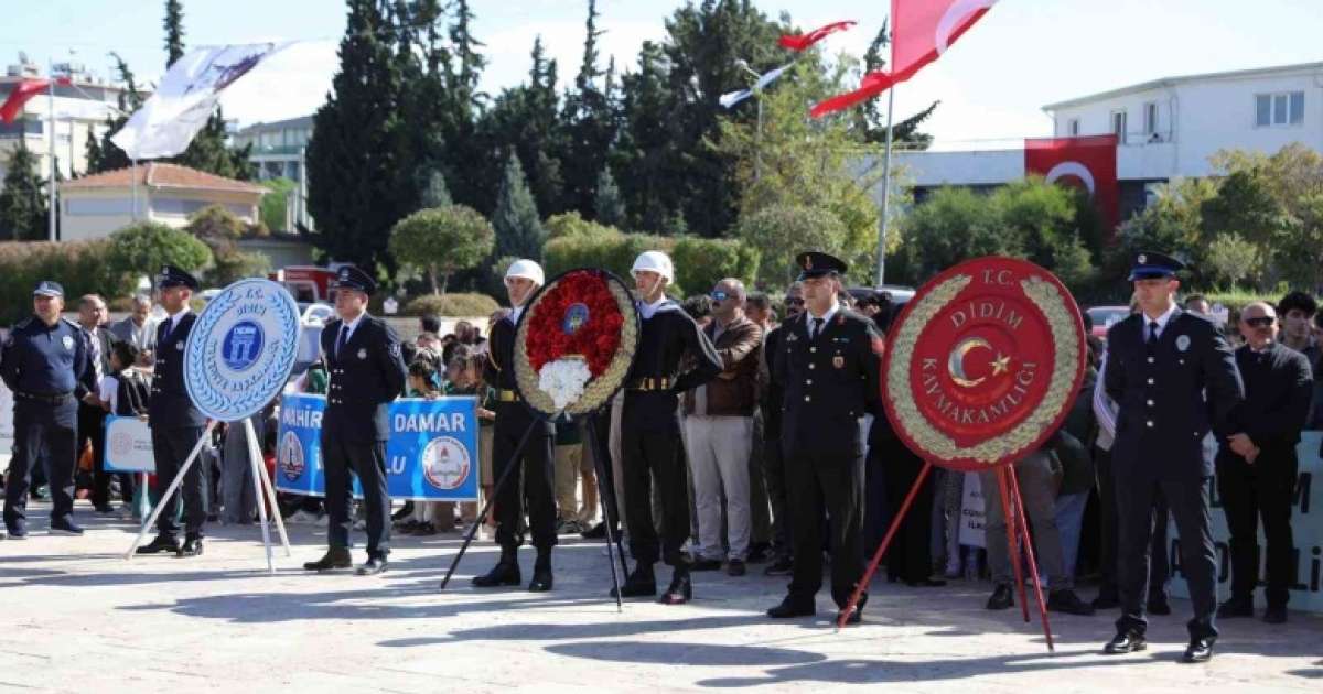 Cumhuriyet Kent Meydanı’nda gerçekleştirilen tören Didim Kaymakamı Mesut Çoban, Didim Garnizon Komutanı Albay Erkut Arslan, Didim Belediye Başkanı Hatice Gençay, Didim Cumhuriyet Başsavcısı Anıl Altay ve Didim Emniyet Müdürü Yunus Dinç’in yanı sıra ilçe protokolü, kamu kurum amirleri, siyasi parti temsilcileri, askeri erkan, öğrenciler ve halkın geniş katılımıyla gerçekleşti.