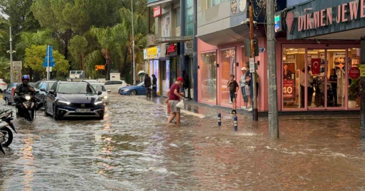 Meteoroloji’nin uyarısının ardından Fethiye’de sağanak yağış etkili oldu. Yaklaşık bir saat süren şiddetli yağış sonrası Fethiye ilçe merkezi Venedik’e döndü. Yoğun yağış sonrası yollar suyla kaplanırken, araç sürücüleri zor anlar yaşadı, trafik durma noktasına geldi. Yağışa hazırlıksız yakalanan vatandaşlar iş yerleri ve kapalı alanlara sığındı. Bazı yollarda ulaşım sağlanamazken, yağışla birlikte ev ve iş yerlerinde su baskınları yaşandı. İş yeri sahipleri ve çalışanlar kendi imkanları ile su tahliyesi yapmaya çalışırken, taşan rögarları da temizlemeye çalıştı.