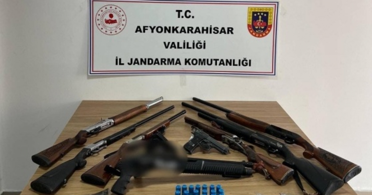Edinilen bilgilere göre, Afyonkarahisar İl Jandarma Komutanlığı ekipleri tarafından düğün ve eğlencelerde havaya ateş açarak genel güvenliği kasten tehlikeye sokan şahıslara yönelik operasyon yapıldı. Operasyonda yapılan aramada 2 adet kuru sıkı tabanca, 5 adet ruhsatsız av tüfeği, 2 adet ruhsatlı av tüfeği, 48 adet 12 kalibre çapında av tüfeği fişeği ve 3 Adet 6136 sayılı kanun çerçevesinde olduğu değerlendirilen bıçak ele geçirildi. Operasyon sonrası İ.K., İ.D., R.T, O.T., M.K., A.D ve M.G. isimli şahıslar gözaltına alındı.