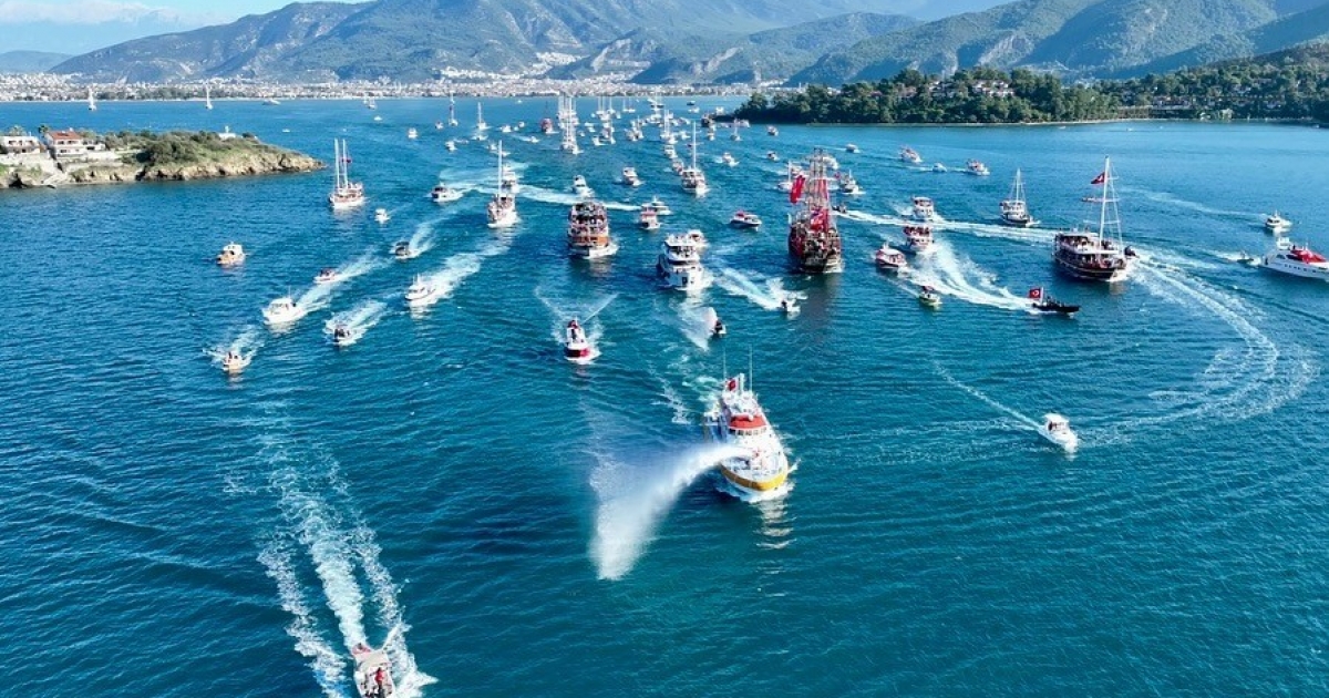 Cumhuriyet’in ilanının 102. yılı kutlamaları kapsamında Fethiye Körfezi’nde deniz alayı ve karada araç konvoyu düzenlendi. Bayraklarla süslenen tekneler, traktörler, otomobiller ve motosikletler, marşlar eşliğinde korteje katıldı.