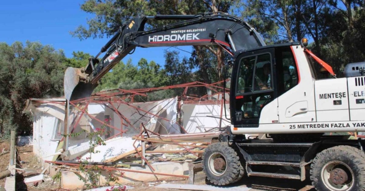 Menteşe Belediyesi ekipleri, imar kanununa aykırı olarak inşa edilen yapıların yıkımını kepçelerle gerçekleştirdi. Yıkım öncesinde belediye yetkilileri tarafından yapılarda bulunan eşyalar taşındı, elektrik tesisatları söküldü.