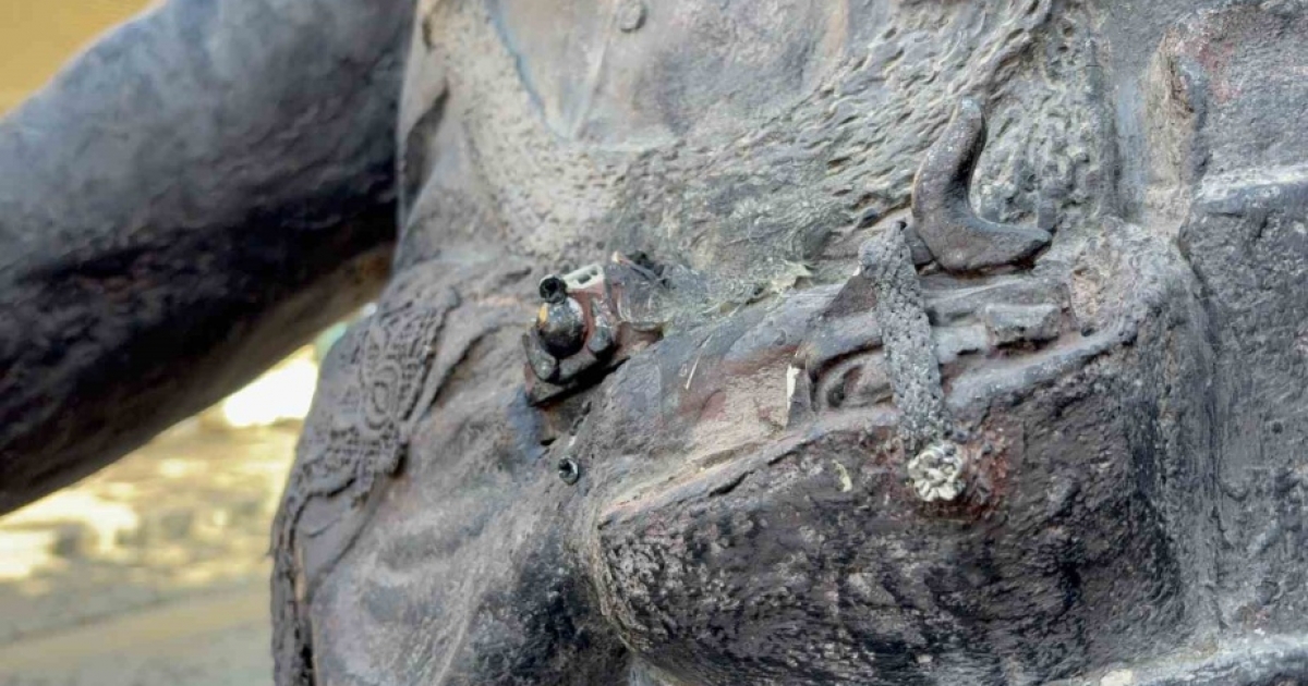 Aydın’ın Efeler ilçesinde tarihi hasır pazarında bulunan Danişmentli İsmail Efe heykelindeki kama çalındı.