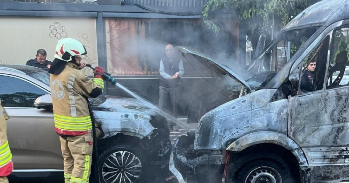 İtfaiye ekiplerinin müdahalesiyle yangın kontrol altına alınırken, midibüs ve yakınında park halinde bulunan bir otomobil yanarak kullanılamaz hale geldi.