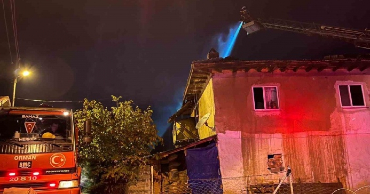 Yangın, Uşak’ın Banaz ilçesine bağlı Muratlı köyünde meydana geldi. Edinilen bilgilere göre, H.İ.S’ye ait ahşap 2 katlı evin çatısına yıldırım düşmesi sonucu alevler yükseldi. Kısa sürede büyüyen yangın, tüm çatı katını sardı.