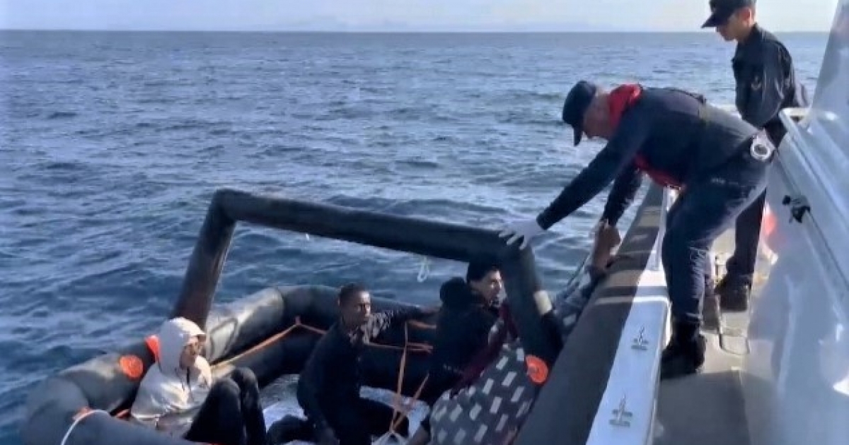 Aydın’ın Didim ilçesinde Yunan unsurları tarafından Türk karasularına geri itilen lastik bottaki 4 düzensiz göçmen kurtarıldı.