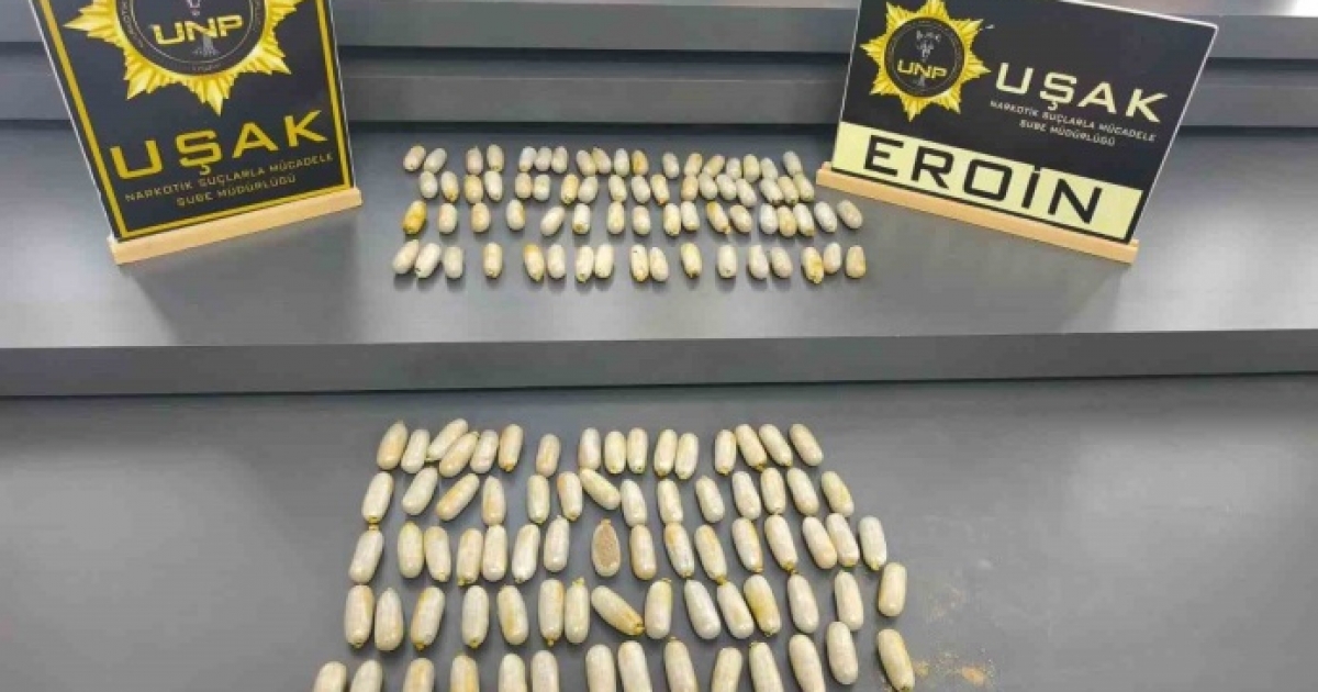 Uşak’ta narkotik ekiplerinin yürüttüğü operasyonda midelerinde 145 kapsül içinde toplam 1 kilo 100 gram eroin taşıyan iki şüpheli tutuklandı.