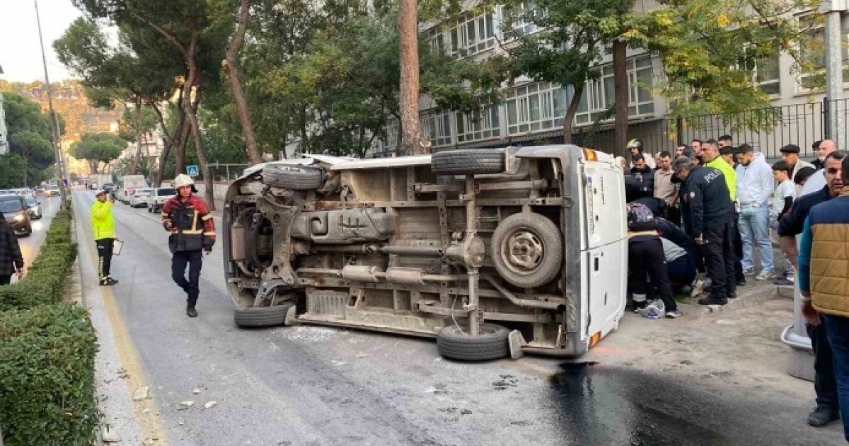 Aydın’ın Efeler ilçesinde kaldırıma çarparak takla atan ve ardından park halindeki bir araca çarparak durabilen ticari aracın sürücüsü yaralandı.