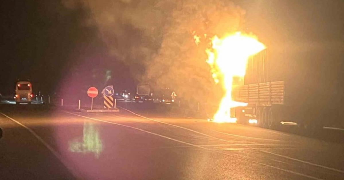 HAREKET HALİNDEKİ TIR ALEV TOPUNA DÖNDÜ
