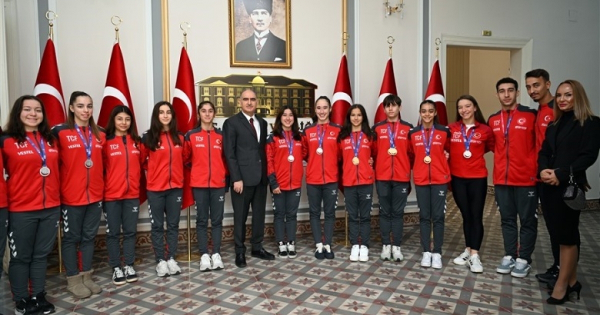 Azerbaycan’daki Aerobik Cimnastik Avrupa Şampiyonası’nda madalya kazanarak Manisa’ya gurur yaşatan milli sporcular, Vali Vahdettin Özkan tarafından kabul edildi. Vali Özkan, gençlerin başarısının şehrin spor potansiyelini ortaya koyduğunu vurguladı.