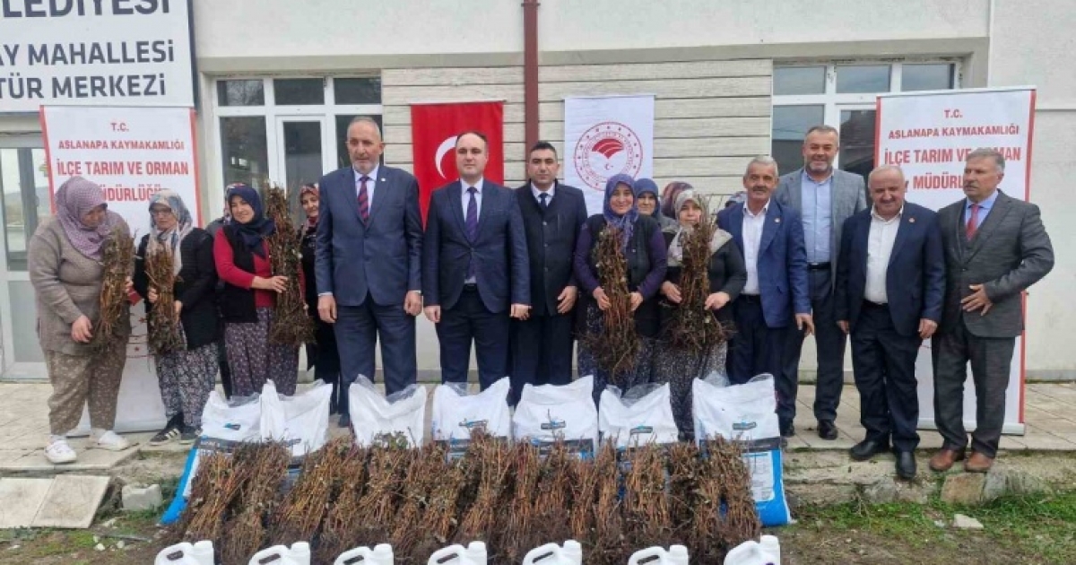 ASLANAPA’DA 13 KADIN ÇİFTÇİYE YÜZDE 75 HİBELİ 7 BİN ADET AHUDUDU FİDANI DAĞITILDI