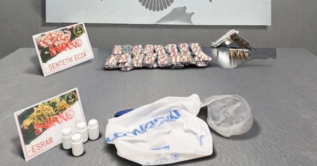Bayraklı İlçe Emniyet Müdürlüğü Devriye Ekipler Amirliği ve Narkotik Suçlarla Mücadele Şube Müdürlüğü Sokak Suçları Büro Amirliği ekipleri, K.K. (32) adlı bir kişinin uyuşturucu ticareti yaptığının belirlenmesi üzerine savcılık izniyle adrese operasyon gerçekleştirdi. Yapılan aramada evdeki çamaşır makinesi içerisinde 896 adet uyuşturucu nitelikli hap, 66 gram esrar, ruhsatsız tabanca ve 26 adet fişek ele geçirildi.