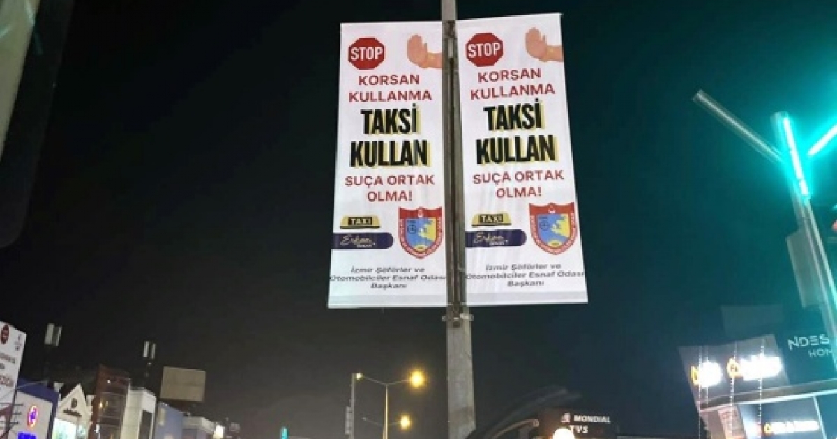 İzmir Şoförler ve Otomobilciler Esnaf Odası Başkanı Erkan Özkan, şehrin dört bir yanına "Korsan kullanma, taksi kullan, suça ortak olma" yazılı afişler astıklarını duyurdu.