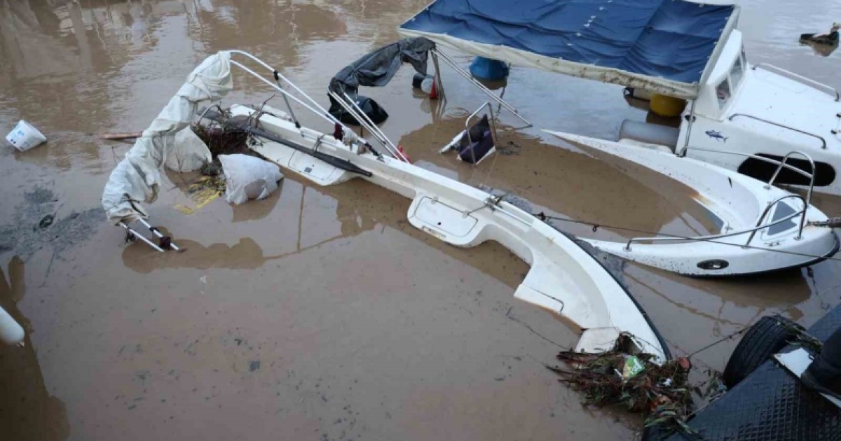 Aydın’ın Kuşadası ilçesinde etkili olan sağanak yağışla beraber oluşan sel sebebiyle Davutlar Balıkçı Barınağı’nda bağlı tekneler zarar görürken, bazı tekneler battı.