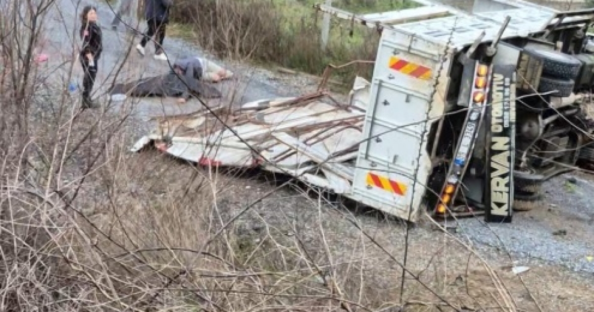 KONTROLDEN ÇIKAN KAMYON TALİ YOLA UÇTU: 1 ÖLÜ, 1 YARALI