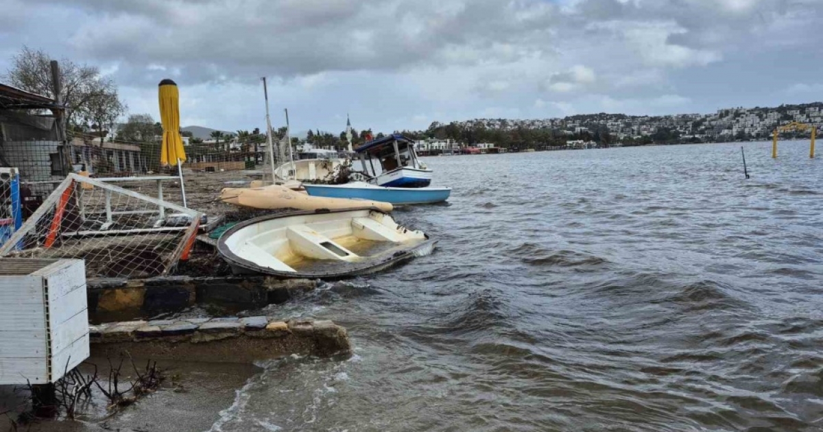 Muğla’nın Bodrum ilçesinde etkili olan fırtınada koyda demirli tekneler kıyıya sürüklendi.