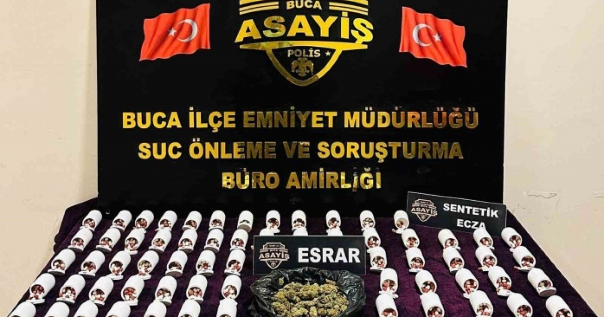 İzmir’in Buca ilçesinde polis ekipleri tarafından uyuşturucu madde ticareti ve imalatına yönelik düzenlenen operasyonda 3 bin 478 adet sentetik ecza ile 150 gram esrar ele geçirilirken, olayla ilgili bir şüpheli şahıs gözaltına alındı.