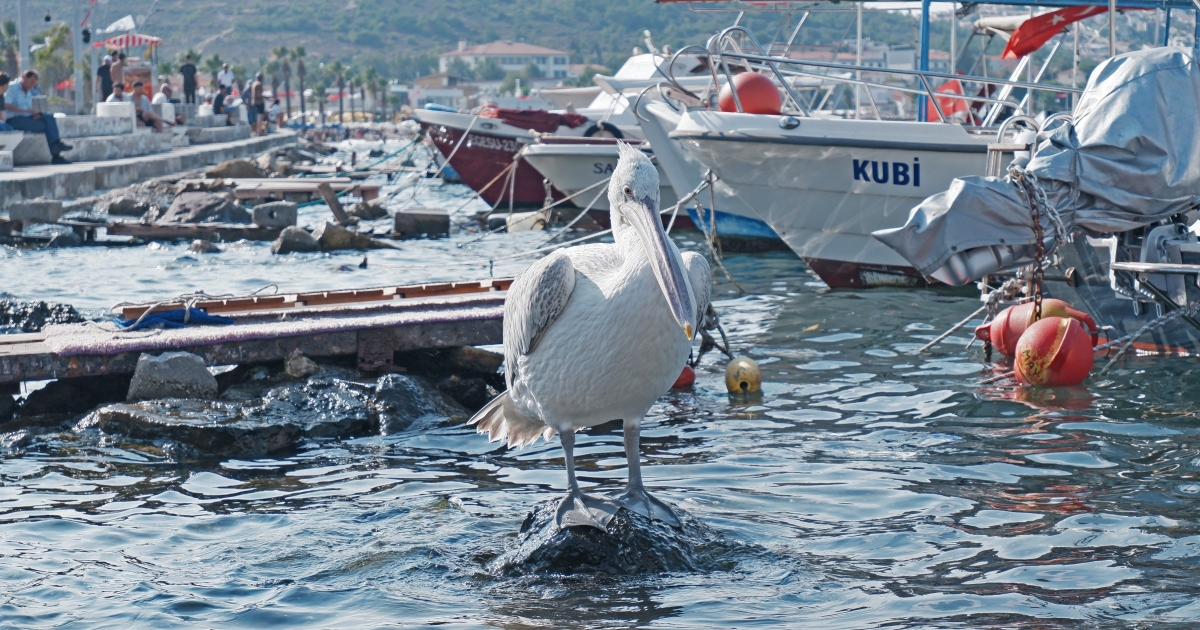 İzmir'in Foça ilçesi Yeni Foça Mahallesinde, geçen yaz rahatsızlanarak insanlardan yardım istercesine pazaryerine inen pelikan, bu yaz tekrar Foça’ya geldi. Geçtiğimiz yaz, rahatsızlanan pelikana vatandaşlar sahip çıkarken, gerekli tedavilerin ardından Ekim ayı sonlarına doğru Foça’yı terk eden pelikan, bu yaz tekrar yeni Foça’ya geldi.