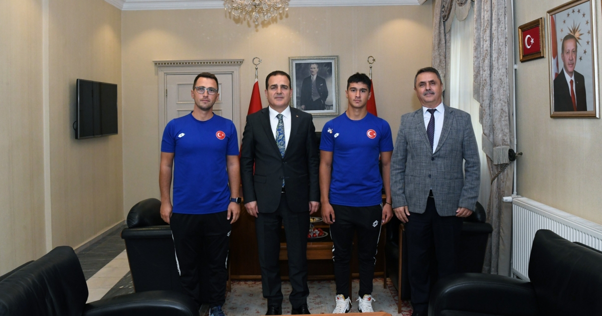 Geçen Mayıs ayında Slovakya’da düzenlenen Uluslararası Kano Yarışları’nda şampiyon olarak altın madalya kazanan, 7-10 Eylül 2023 tarihleri arasında Polonya’da düzenlenen ve 43 ülkeden 800 sporcunun katıldığı Olimpik Umutlar Kano Yarışlarında K1 200 metre U15 yarışlarında şampiyon olan, K1 500 metrede ise 2. olan Köyceğiz Su Sporları Kamp Eğitim Merkezi sporcusu Kaan Karahan, Muğla Valisi İdris Akbıyık’ı ziyaret etti.