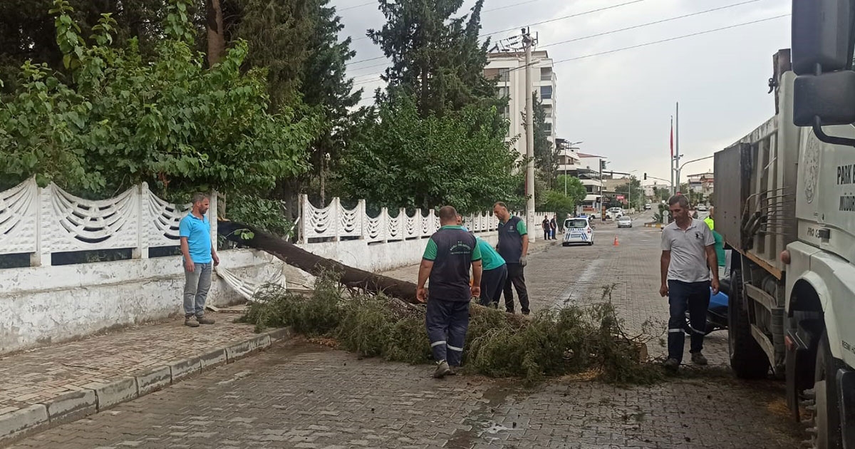 Nazilli’de öğle saatlerinde bir anda bastıran sağanak yağış olumsuzlukları da beraberinde getirdi. Sağanak yağış ve fırtına ile birlikte şehrin trafik yönünden en işlek olan yollarından biri olan Ordu Caddesi’nde bir ağaç yolun ortasına devrildi. Zafer Mahallesi’nde bulunan Evranlı Mezarlığı ile elektrik santrali işletmesinin arasındaki yola devrilen ağaç yolu trafiğe kapattı.