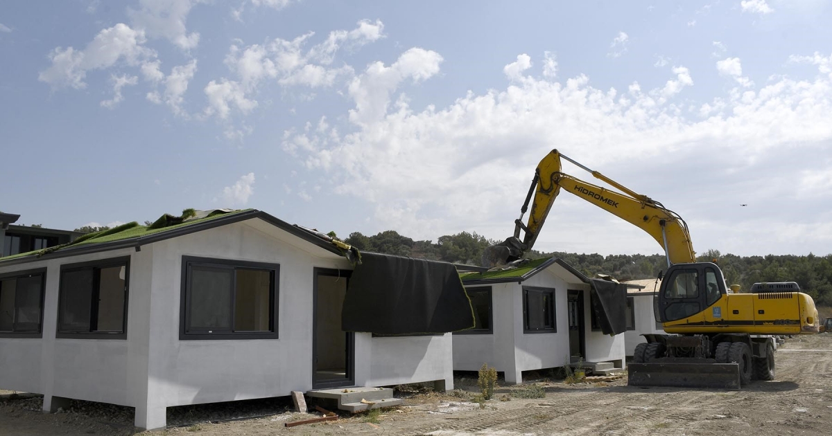 Kuşadası Belediyesi tarafından Kirazlı Mahallesi’nde bulunan nitelikli tarım arazisi üzerine İmar Kanunu’na aykırı olarak yapıldığı tespit edilen özel bir firmaya ait villaların yıkımına devam ediliyor.