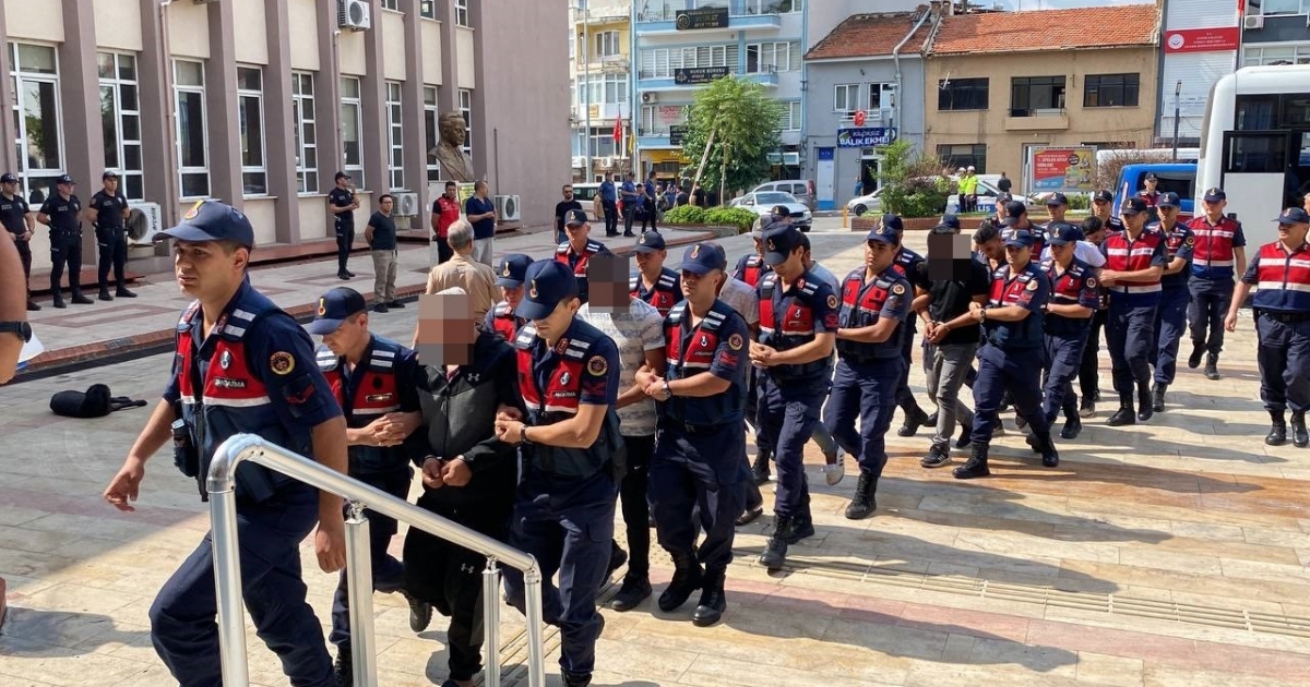 Aydın'ın Efeler ilçesinde 'dur' ihtarına uymayıp kaçan araç sürücüsü kovalamacanın ardından durdurulması esnasında bıçaklanan polis olayı ile ilgili jandarma tarafından gözaltına alınan 8 şüpheli işlemlerinin ardından adliyeye sevk edildi.