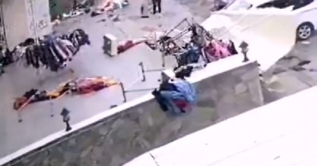 Antalya’nın Alanya ilçesinde kent merkezinde bir anda oluşan hortum bir butik işletmesinin önünü saniyeler içerisinde savaş alanına çevirdi. Rüzgar dolayısıyla askıda bulunan elbiseler ve diğer eşyalar sağa sola savruldu. Uçan şemsiye ise hafif ticari araca çarparak durdu. O esnada aracın da hareket ettiği görüldü.