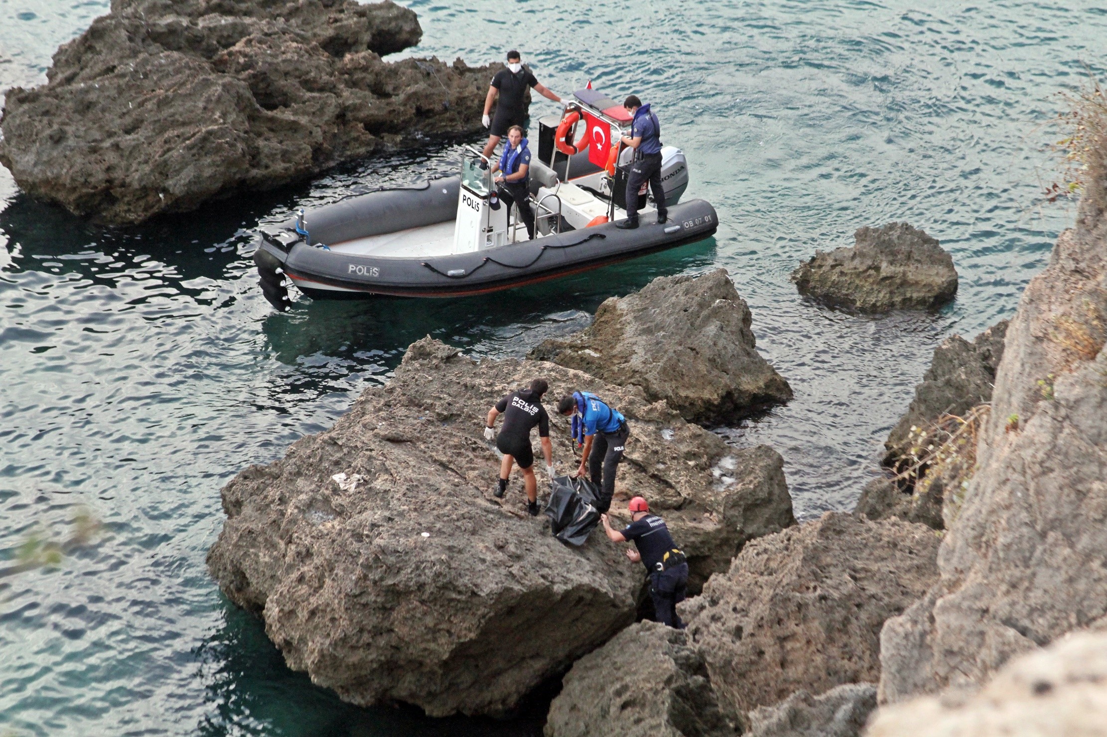 Antalya’da 20 metre yükseklikteki falezlerin denizle buluştuğu kayalık alanda genç bir kadının cesedi bulundu. Ceset, kimliği ve ölüm nedeni araştırılmak üzere otopsi için adli tıp kurumu morguna kaldırıldı.
