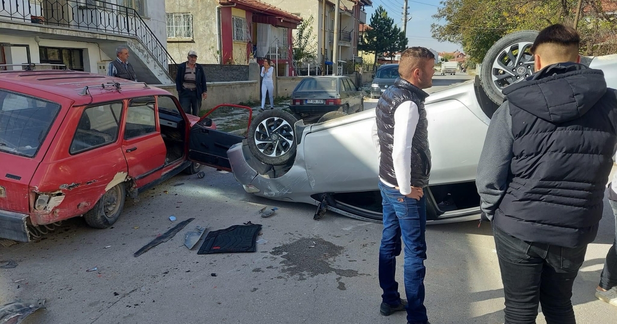 Afyonkarahisar’da meydana gelen trafik kazasında ara sokakta park halindeki otomobile çarpan araç ters dönerek dururken, kazada 3 kişi yaralandı.