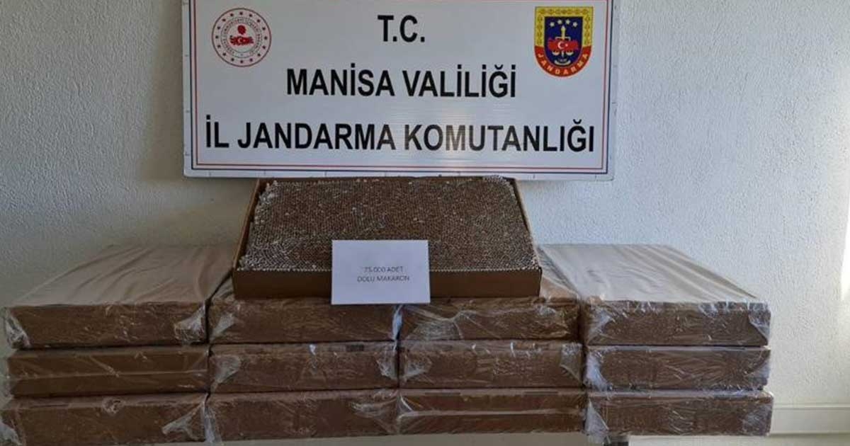 Manisa'nın Kula ilçesinde jandarma ekiplerince durdurulan bir araçta yapılan aramada 75 bin adet dolu makaron ele geçirildi.