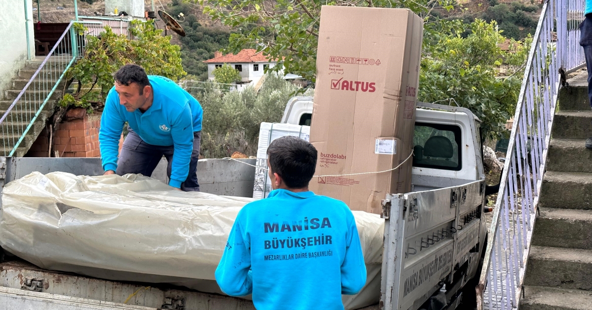 Manisa Büyükşehir Belediyesi, Köprübaşı ilçesinde evlerinde çıkan yangın nedeniyle eşyaları kullanılamaz hale gelen Bulut ailesinin yardımına koştu. Sosyal Hizmetler Dairesi Başkanlığı yetkilileri, televizyon, buzdolabı, çamaşır makinesi ve çekyattan oluşan ev eşyalarının teslimini aileye gerçekleştirdi.