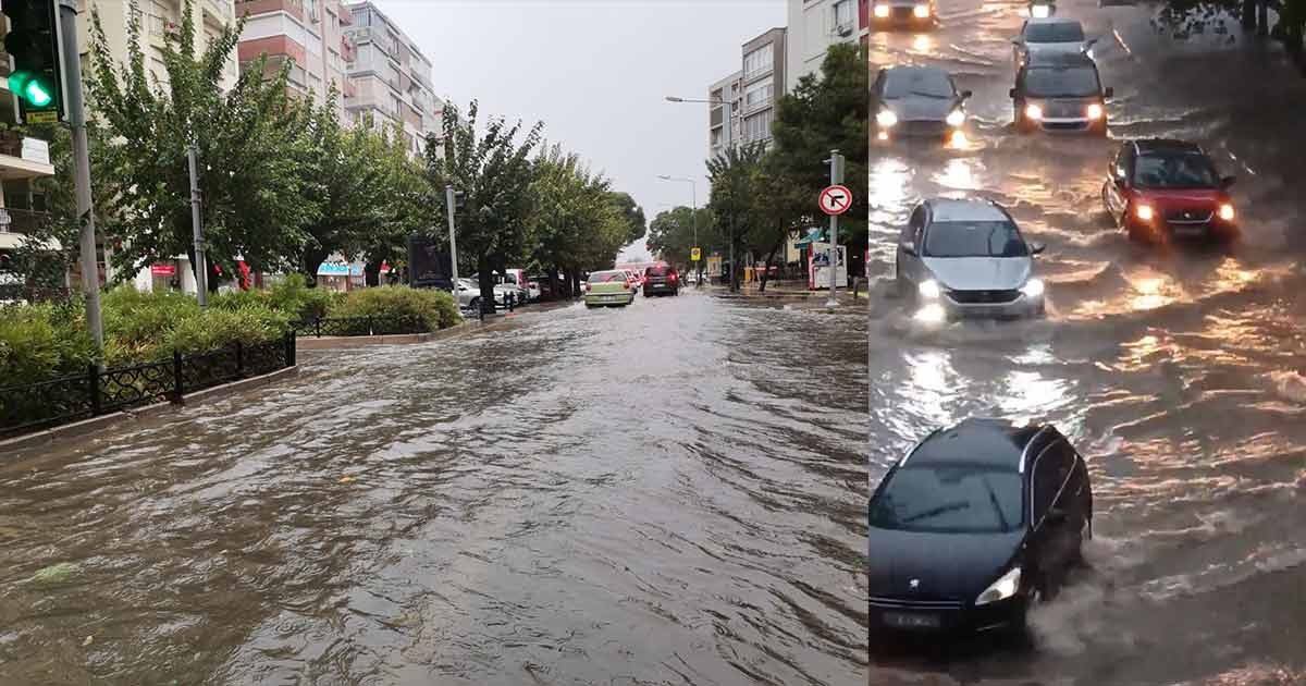 İzmir’de, aniden bastıran sağanak yağış cadde ve sokakları göle çevirdi, hayatı felç etti.